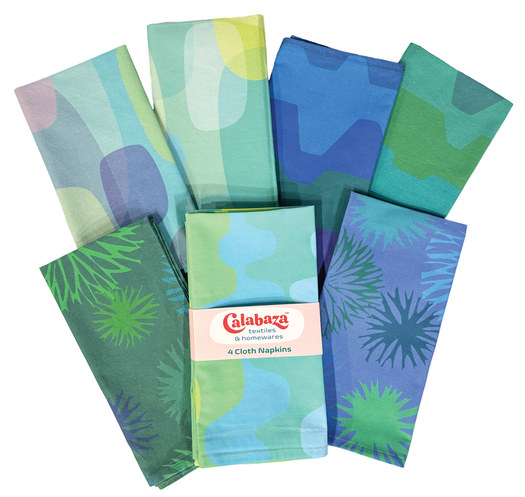 Original modern patterns in vibrant colorways adorn tabletop, kitchen, and homewares for a joyous home. Shop online or at the Lena Street Holiday Market, December 13, noon to 5 pm. @calabazagoods