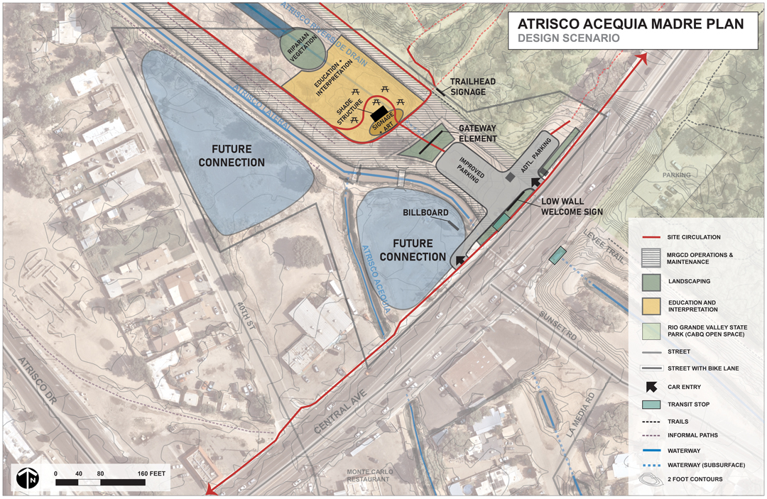 Conceptual plan courtesy of Sites Southwest. The project is a collaboration between Bernalillo County, the City of Albuquerque, the Albuquerque Bernalillo County Water Utility Authority, and MRGCD.