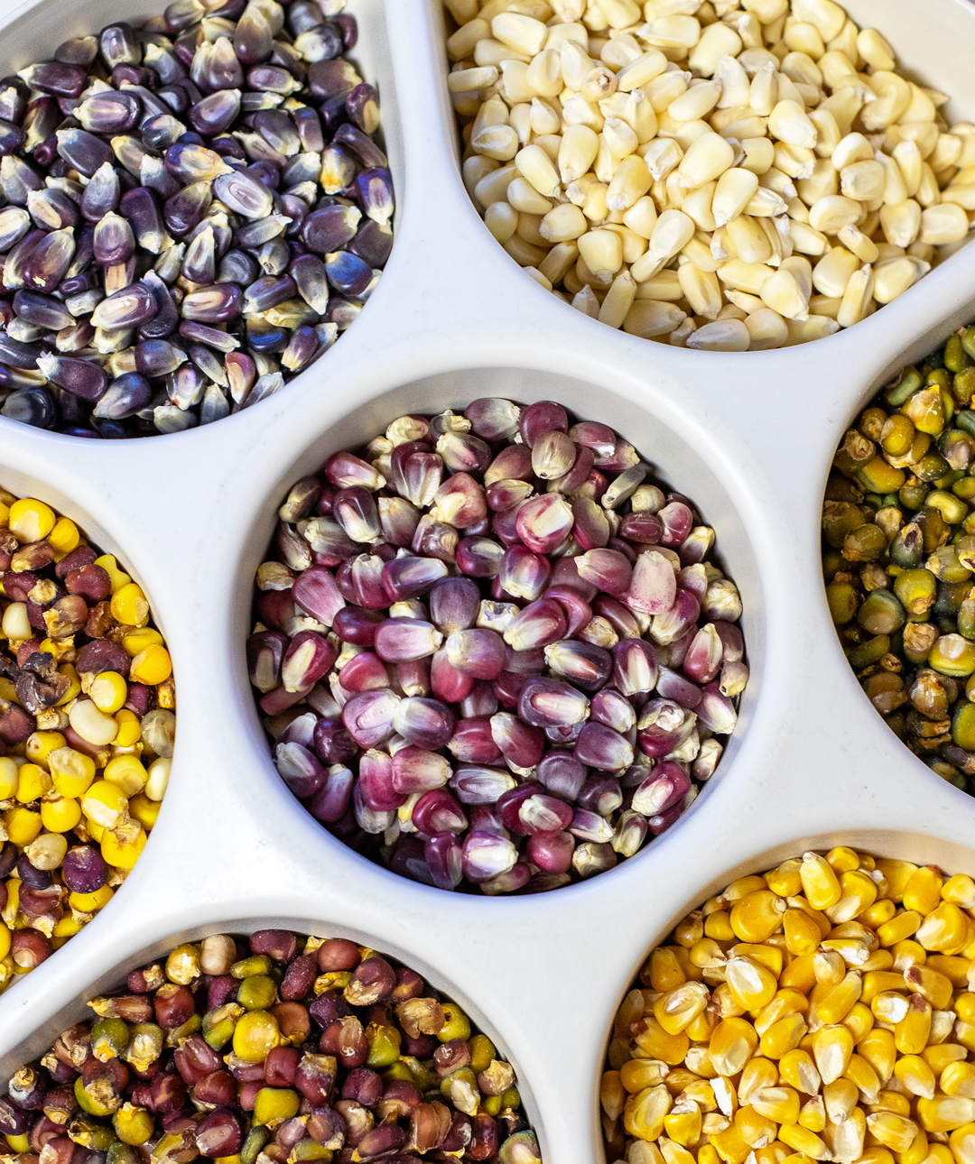 For someone in the business of colorful corn, Felix Mauro Torres’s beginnings were pretty achromatic. Not far from Southwest Heritage Mill, which has been Torres’s project for more than fifteen years, is the North Valley neighborhood where he grew up. Summer after summer, his family grew a hueless heirloom variety there known as White Concha. Originally cultivated in the Española Valley, tall stalks of White Concha corn wave in Torres’s memory like skyscrapers. He recalls their big cobs arching off the leafy green plants. A small number of seed purveyors, such as the MASA Seed Foundation and Native Seeds/SEARCH, still distribute White Concha seed, or Concho, as it is sometimes called. The seed packets feature photos of the white kernels, as stark as chalk on a chalkboard or a sun-bleached cow skull.