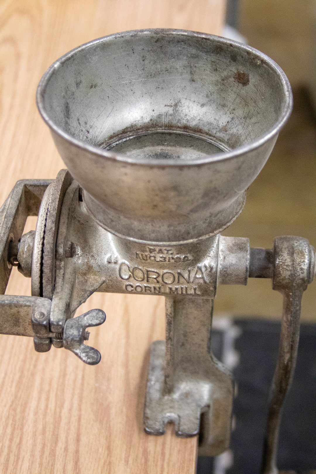 The term “mill” traditionally refers to the place where grain is ground into flour. Torres could run wheat or barley or rye through his machinery, but for nostalgia’s sake, he sticks with corn. Though he now spends almost every day in a large warehouse that houses everything he needs to turn blue corn kernels into blue corn atole, clean grains of popcorn, and package posole, his first mill was his parents’ kitchen. The first milling machine he ever used was his mother’s Corona Corn Mill table clamp grinder, manufactured and patented by the now defunct Landers, Fray & Clark houseware company of New Britain, Connecticut. Of course, the people of “old” Britain weren’t exactly grinding corn—that would be Torres’s family. His mother was Mexican. After immigrating to New Mexico, where she met Torres’s father, she purchased the Corona Corn Mill, automating the processes previously carried out with molcajetes and metates, and used it in preparation of some of Torres’s favorites—tamales at Christmastime and corn tortillas.