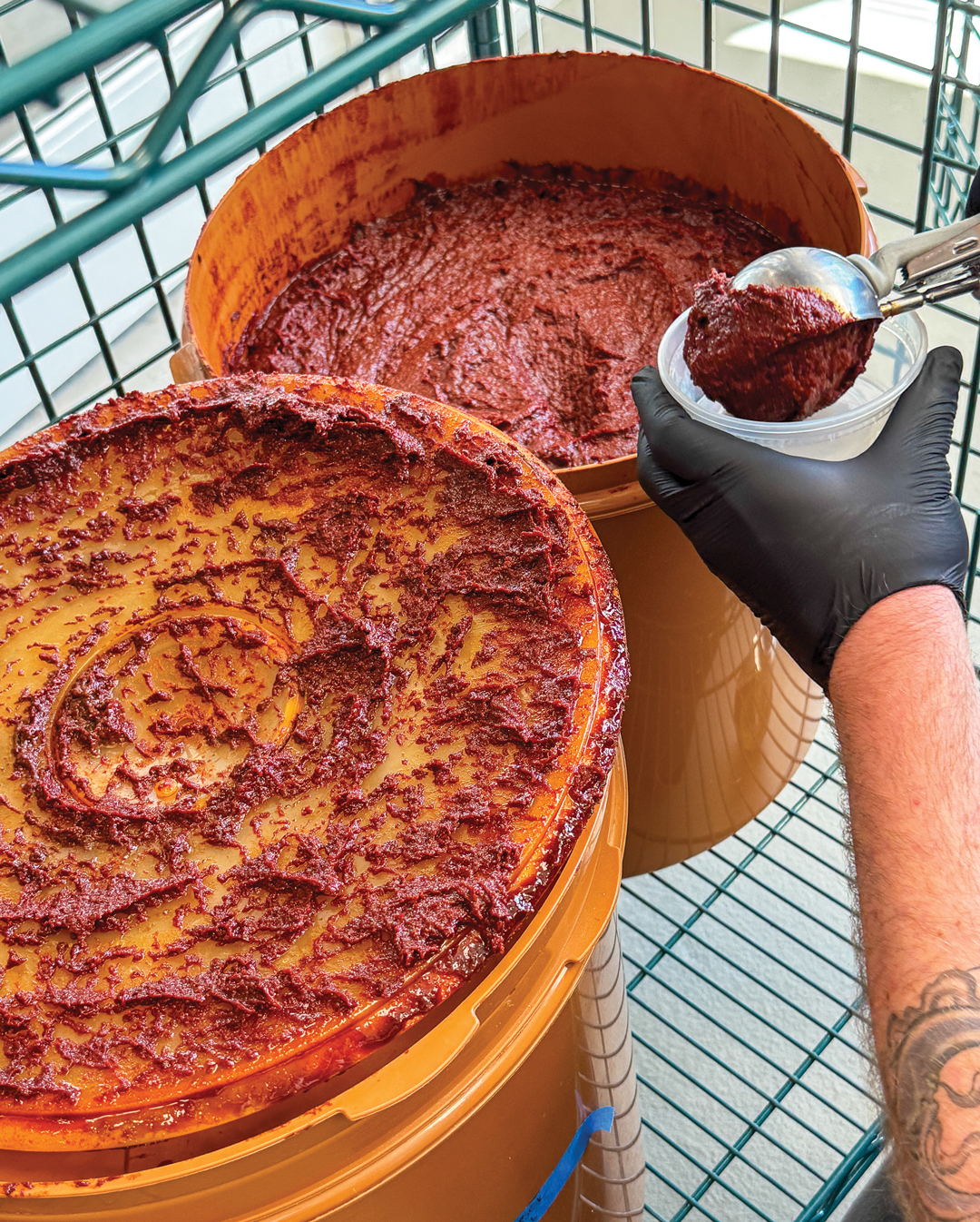 NM ChileJang’s gochujang being scooped for restaurant clients.