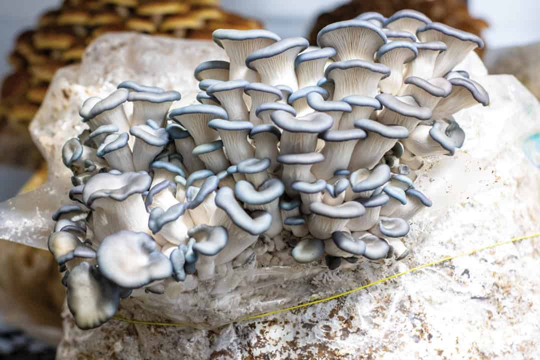 Oyster mushrooms growing at Full Circle Mushrooms.