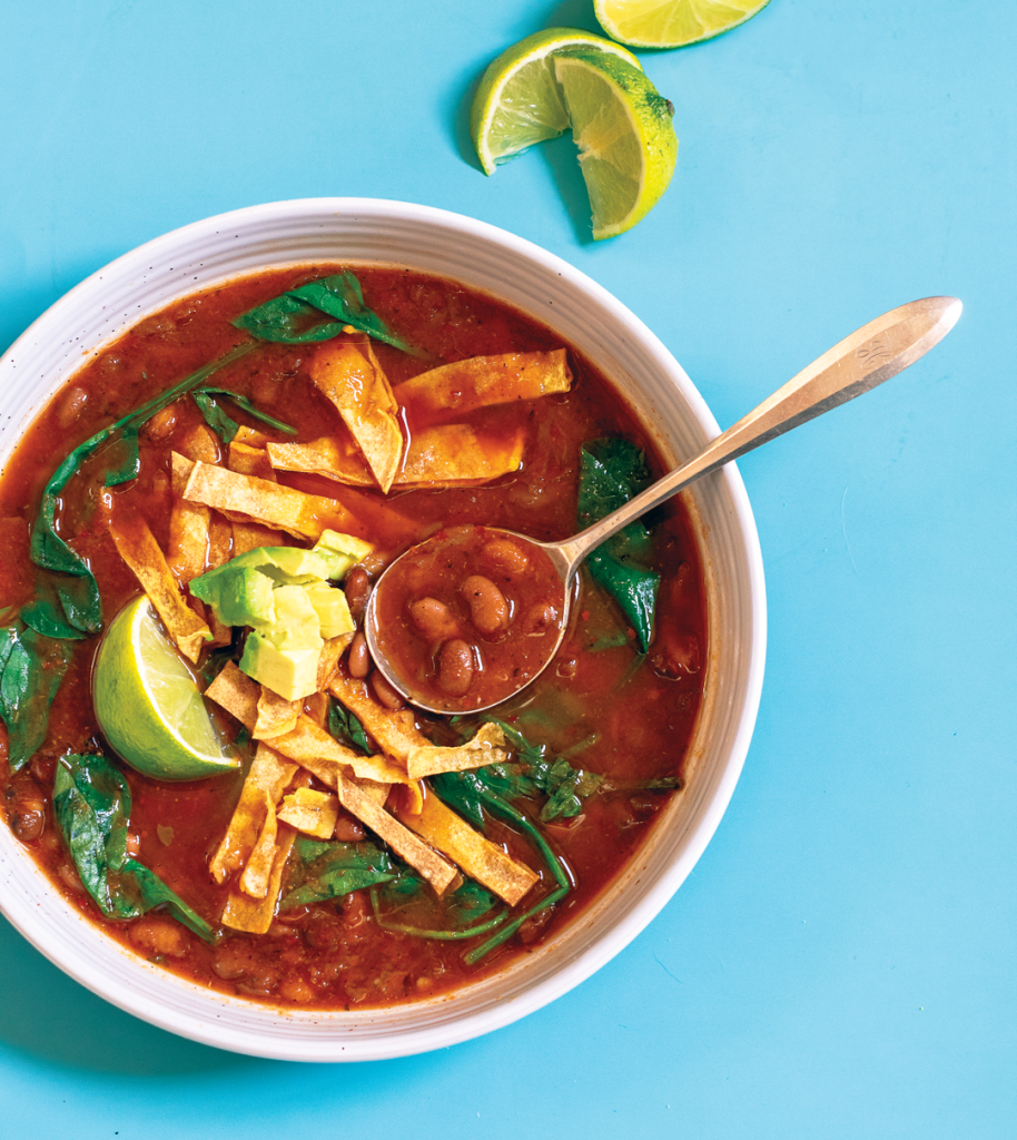 This vibrant tortilla soup turns your pot of cooked pintos into an entirely new meal that can be stretched into multiple meals.