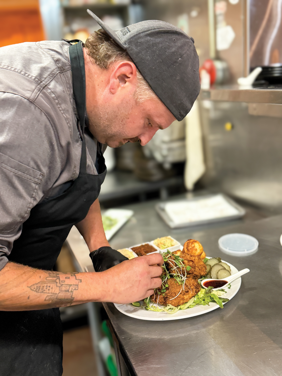 “I use only kosher salt and black pepper,” says Crook, who grew up ranching in Artesia. “You kind of let the quality of the ingredients speak for themselves. I’m a bit of a purist when it comes to food, and I think that has to do with how I was raised as well.”