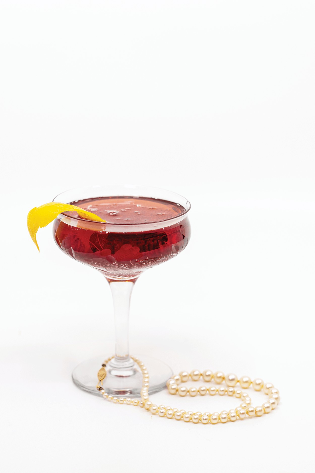 In a shaker filled with ice, add OM Vanilla & Rose Liqueur, pomegranate juice, and Caravedo Pisco, and shake. Strain into a cocktail glass and top with Gruet Brut. Garnish with a lemon twist.