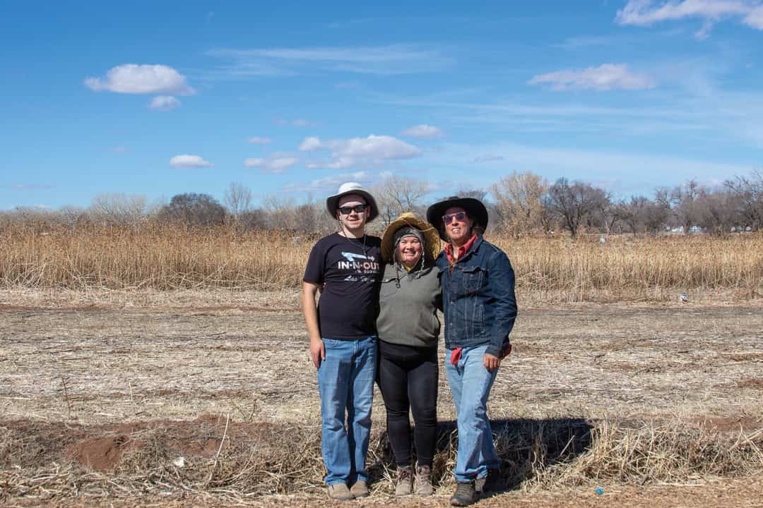 This strong appreciation for community became a theme of my farm tour, which soon led me to the opposite end of Los Ranchos, at a section of the Los Poblanos Open Space that’s situated within Los Ranchos but owned by the City of Albuquerque. There, Celestial Mountain Farm subleases five-eighths of an acre of land from Rio Grande Community Farm (RGCF) as part of a microfarm program run by RGCF. Celestial Mountain Farm is a neurodivergent farmers co-op that grows a variety of vegetables and produces salves and soaps for local markets. I met with cofounders Stef Graner and Logan Gillespie, along with farm supporter Matt Cohen and farmer Andy Personius, on a sunny February morning as the team was planning out the season ahead.